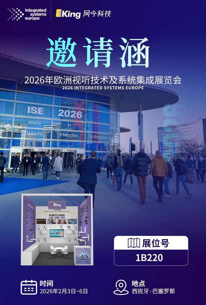网今科技即将出征 ISE 2026|以硬核技术驱动智能未来January 27, 2026/in Industry News/by administrator全球视听产业的年度盛会即将启幕!2026年2月3日至6日,欧洲集成系统展(ISE 2026)将在西班牙巴塞罗那会展中心盛大召开,深耕音视频会议设备领域二十余载的网今科技(ONEKING Technology),将携多款全新升级方案与设备重磅参展,以硬核创新彰显中国智造实力,展位设于1B220,诚邀全球伙伴莅临品鉴。 https://oneking.net.cn/wp-content/uploads/2026/01/YQHcover-450x300_001.jpg 300 450 administrator /wp-content/uploads/2019/04/logo-2-300x84.png administrator2026-01-27 09:33:582026-01-28 09:21:55网今科技即将出征 ISE 2026|以硬核技术驱动智能未来